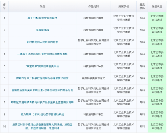 經過指導老師認真輔導及項目審核評比公示,最終“基于STM32的智能導盲杖”、“伺服爬繩器”等十項作品通過校內選拔,推薦至北京市參加本屆大賽的主賽道比賽;“北京冬奧會文創產品創新——以2022北京冬奧會特許商品旗艦店為例”、“以低碳為核心的冬奧科技旅游平臺”兩項作品通過校內選拔,推薦至北京市參加本屆大賽的冬奧專項賽。校內選拔賽結束后,校團委和招生就業處組織專家針對所有推薦參賽作品及參賽團隊進行了一對一的賽前輔導。