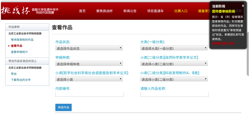 在接到大賽通知后,學校成立了“挑戰杯”大賽組委會,由校團委和招生就業處牽頭在全校征集符合比賽要求的學生課外學術科技作品。經過近一個月的籌備,在各級領導和各二級院部、相關職能部門的支持下,在各位老師、同學的努力下,共征集到二十余項學生課外學術科技作品。針對作品的類別及所涉及的領域,學校舉辦了為期三天的“挑戰杯”輔導實訓營。