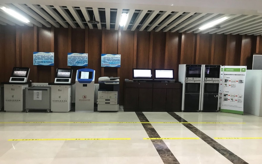 圖書館各部門相互配合,從防疫物資保障、館舍設施消毒、開放時間安排、讀者入館管理、安全引導標識及應急預案等方面做了細致安排,制作、全館擺放圖書館入館須知,編寫防控工作順口溜,方便讀者閱讀、記憶、遵守;設置入口檢測區、二次測溫區,在入口閘機處安裝測溫識別儀器,在圖書館入口、一層服務臺、自助借還機等地均設置了防控黃線,使讀者能夠有序待檢測溫掃碼入館。