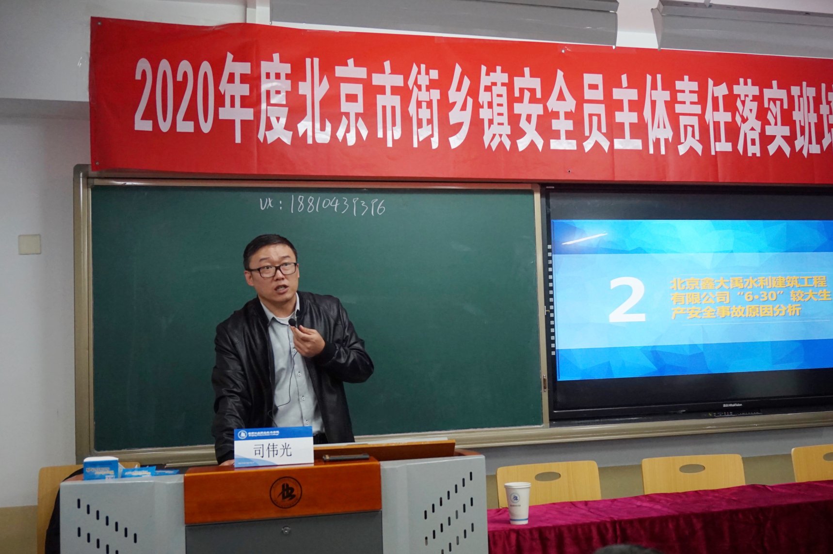 10月14日,在北京市應急管理局統籌協調下,2020年度北京市街鄉鎮安全員主體責任落實班(第一期)開班儀式在北京工業職業技術學院善技樓513隆重舉行。北京市安全生產執法監察總隊副處調研員司偉光、北京工業職業技術學院文法與管理學院院長許保國以及來自東城區、西城區、海淀區、豐臺區、石景山區、門頭溝區、平谷區的107名學員出席了開班儀式。開班典禮由許保國院長主持。