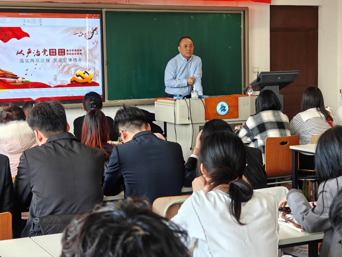 11月22日,黨委副書記魏曉東同志以“從嚴治黨落實兩項法規加強紀律修養”為主題,為發展對象講述了《中國共產黨廉潔自律準則》和《中國共產黨紀律處分條例》的意義,用生動詳實的案例重點解讀了兩項法規的具體規定,對學員個人生活中如何踐行兩項法規提出了明確的要求。