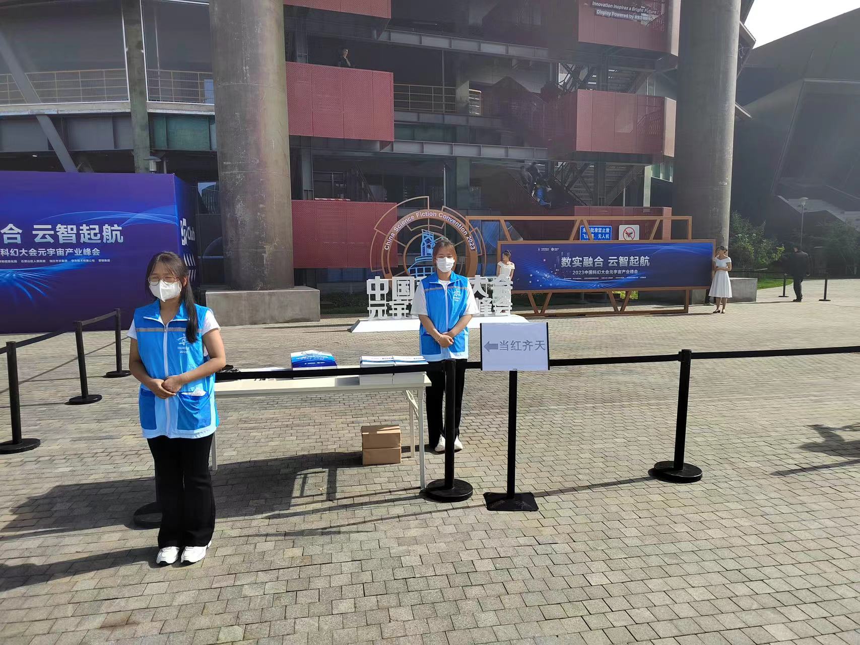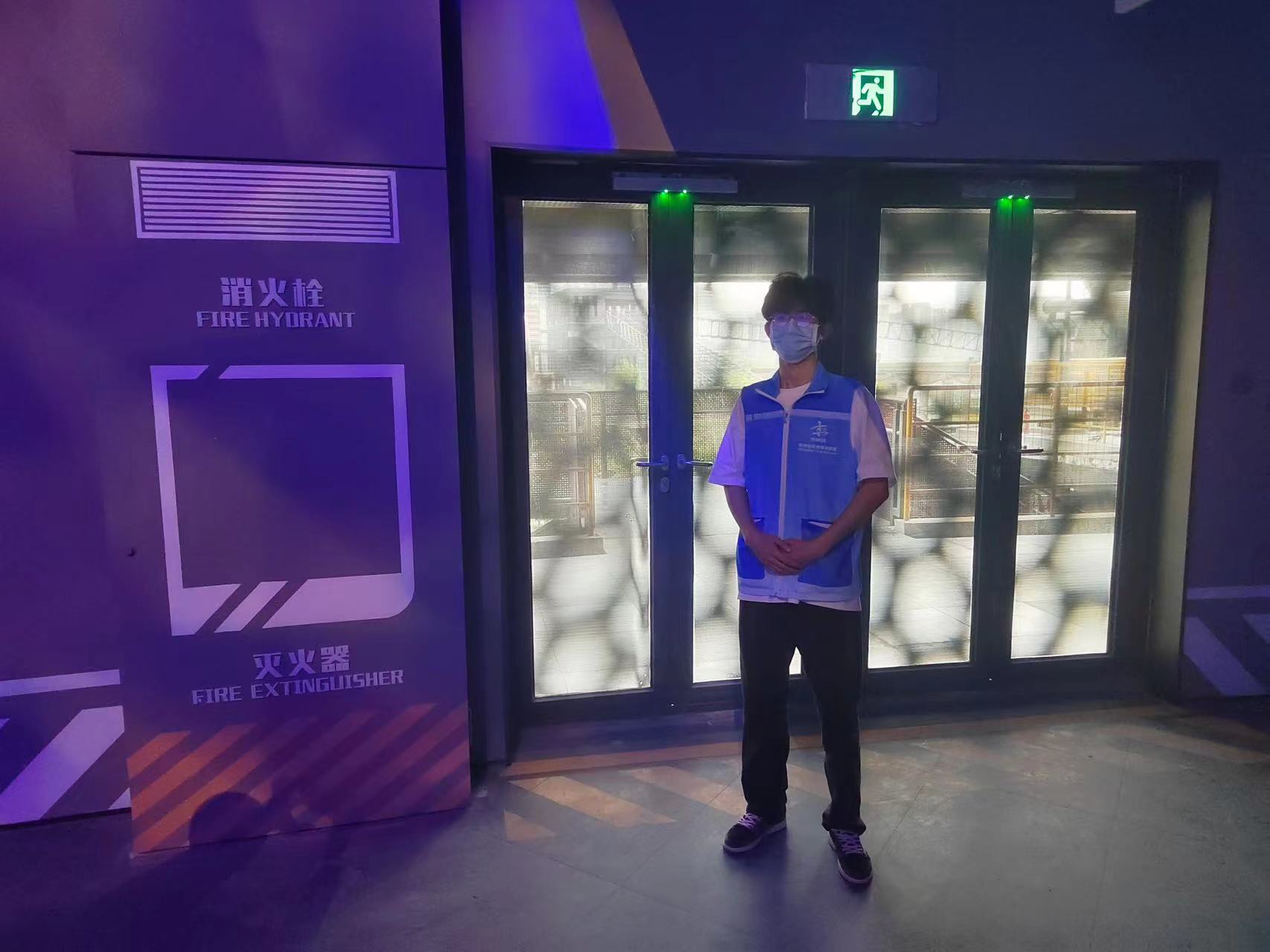 在樓梯口、衛生間、環廊區域等多點位,志愿者們進行安保管控,保障參會人員的安全,助力活動順利開展。
