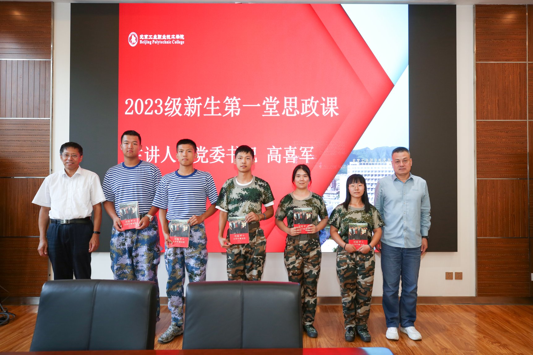 課程結束時,高喜軍書記對新生寄語、贈送書籍《習近平與大學生朋友們》。