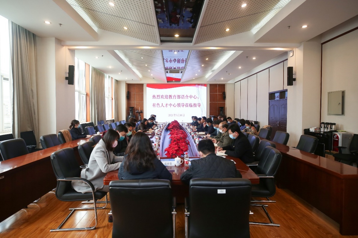 2021年3月10日,教育部中外交流合作中心(簡稱“語合中心”)政策研究處處長孟源、亞非處處長邵旭波一行到訪我校。有色金屬工業(yè)人才中心副主任宋凱、教育培訓(xùn)處處長趙麗霞、培訓(xùn)處干事郝夢真一同到訪。我校黨委書記高喜軍、校長安江英、副校長周燕在匠心樓第四會議室接待了來訪客人。國際處處長唐正清、機(jī)電工程學(xué)院院長張春芝、建筑與測繪工程學(xué)院院長李長青、電氣與信息工程學(xué)院院長王巍、文法與管理學(xué)院院長許保國、基礎(chǔ)教育學(xué)院院長王佼以及黨政辦公室和國際處相關(guān)人員參與調(diào)研。會議由副校長周燕主持。