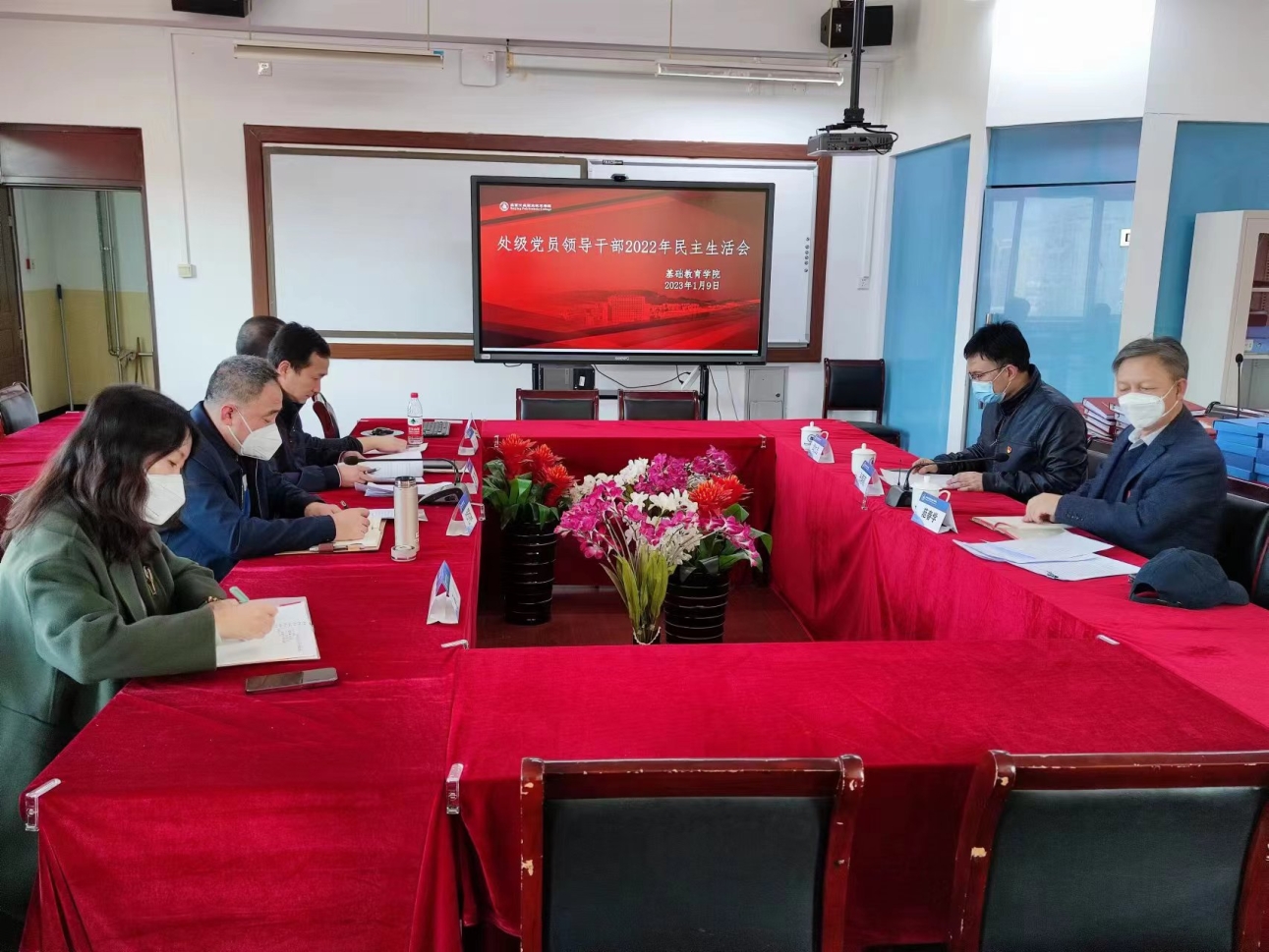 2023年1月9日下午,按照學校黨委統一安排部署,基礎教育學院召開了處級黨員領導干部2022年度民主生活會。學院聯系校領導、黨委常委、紀委書記張萌萌全程參加并指導,黨委組織部專職組織員范春學到會督導,學院領導班子參加會議,會議由學院黨總支書記沈杰主持。