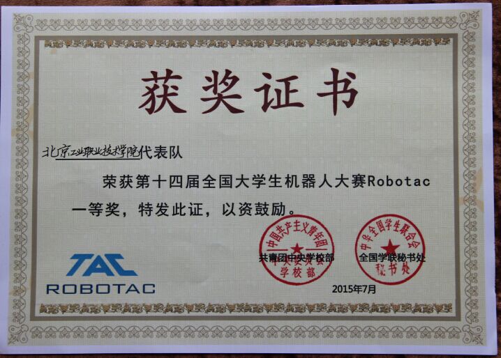 2015年7月12日,第十四屆全國大學(xué)生機(jī)器人大賽Rbotac賽事在江蘇鹽城落下帷幕,代表我校參賽的機(jī)電一體化技術(shù)**表隊(duì)在賽場(chǎng)中團(tuán)結(jié)拼搏、斗智斗勇,一路力克群雄,喜獲冠軍,并獲得最佳策略獎(jiǎng)。
