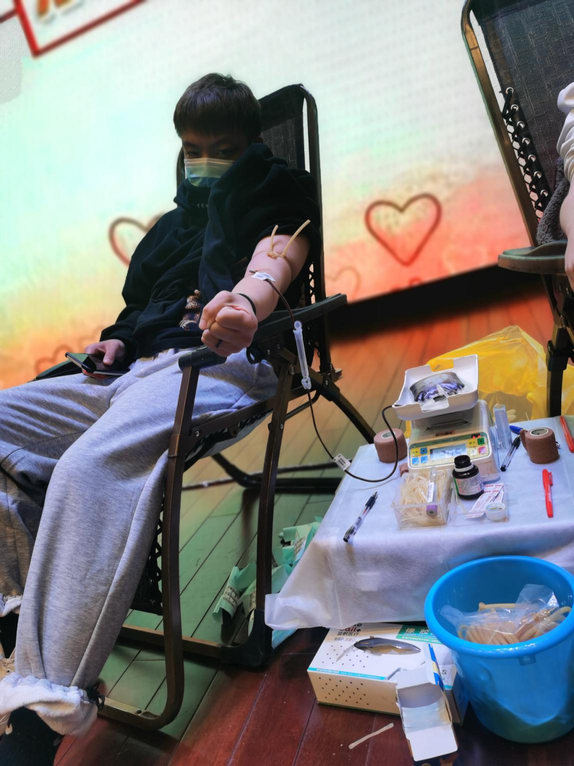 深秋清晨的寒冷并未冷卻同學們的獻血熱情。在獻血區,前來獻血的同學們紛紛挽起袖管,躺在采血椅上,獻出自己的青春熱血。問及同學們獻血感受時,一段段樸實的話語讓人感動。“疫情期間的正能量,讓我們感受很多,作為一名新時代大學生,獻血是有公益心和社會擔當的重要體現,捐熱血無悔青春!”“想到自己的血液,可以救治病人,我心里就很滿足。”“雖不能白衣執甲,但我有一腔熱血,無償獻血讓愛傳遞,我獻血我快樂!”……