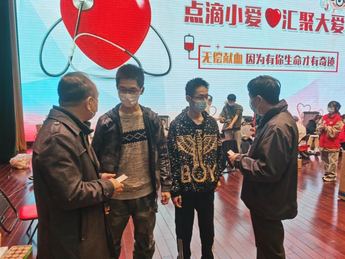 學校各部門相關領導看望參與愛心獻血的學生