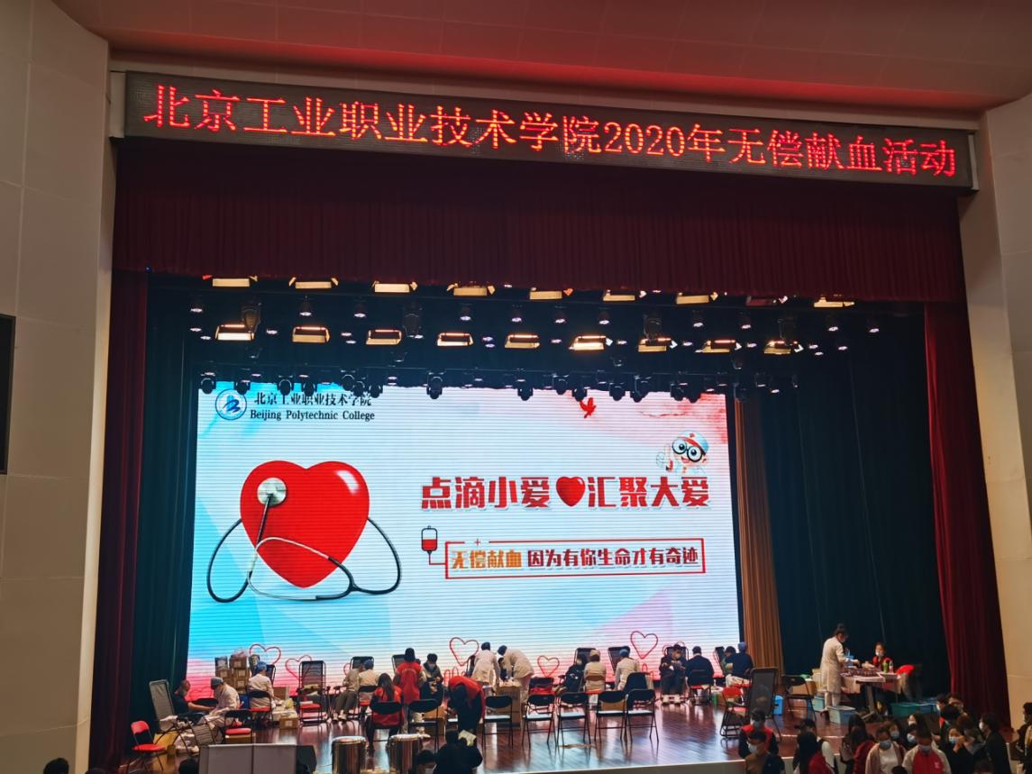 10月29日和10月30日8:00—13:00,北京工業職業技術學院聯合北京市石景山區疾控中心、北京市石景山區紅十字會的“無熱血不青春”愛心獻血活動在我校禮堂舉行。為期兩天的愛心獻血活動吸引了廣大學生的踴躍參與,累計報名826人,成功獻血521人,共奉獻104200毫升熱血,其中17人成為造血干細胞志愿者。校黨委書記王偉、校黨委副書記魏曉東、黨政辦公室、學生工作處、教務處、校團委及各二級學院相關領導到現場看望參與愛心獻血的學生。