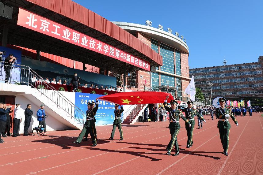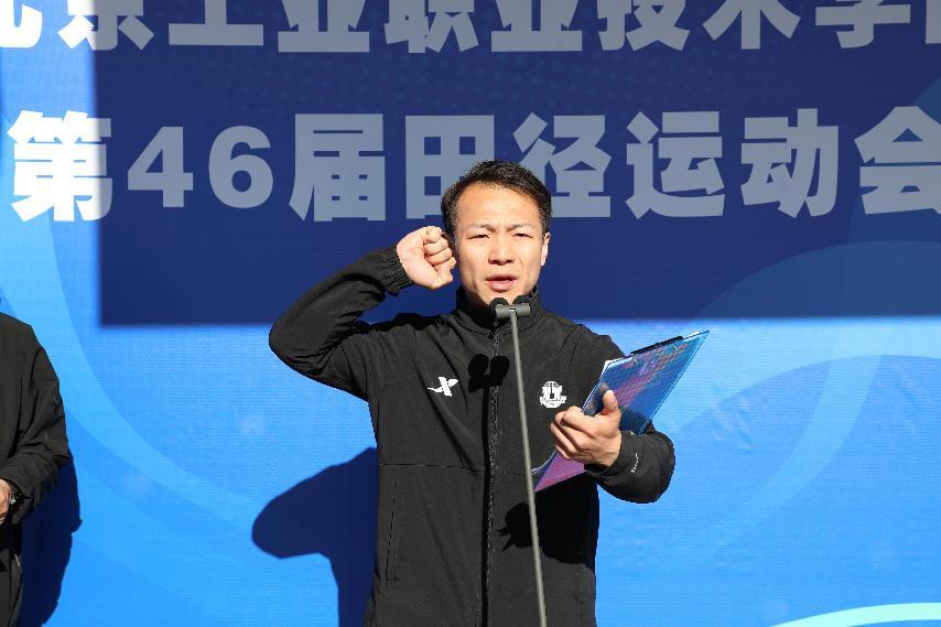 在宣誓環節,運動員代表、裁判員代表進行莊嚴宣誓。田紅芳宣布北京工業職業技術學院第46屆田徑運動會正式開幕,運動場瞬間沸騰。