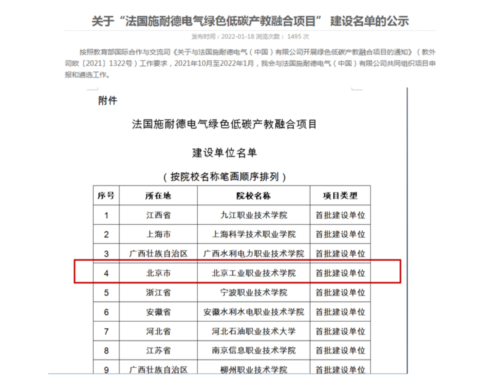 “雙碳”時代掀起了綠色低碳的發(fā)展浪潮,各大產業(yè)向數字化和可持續(xù)發(fā)展的“雙轉型”亟需大量高技術技能人才作為智能支撐。2020年10月,教育部國際合作與交流司發(fā)布了《關于與法國施耐德電氣(中國)有限公司開展綠色低碳產教融合項目的通知》,全國有177所職業(yè)院校進行了申報,經省(區(qū)、市)教育廳(委)推薦和專家組評議及現(xiàn)場考察,最終認定38所院校為“法國施耐德電氣綠色低碳產教融合項目”建設單位,我校成功入選15家首批建設單位。