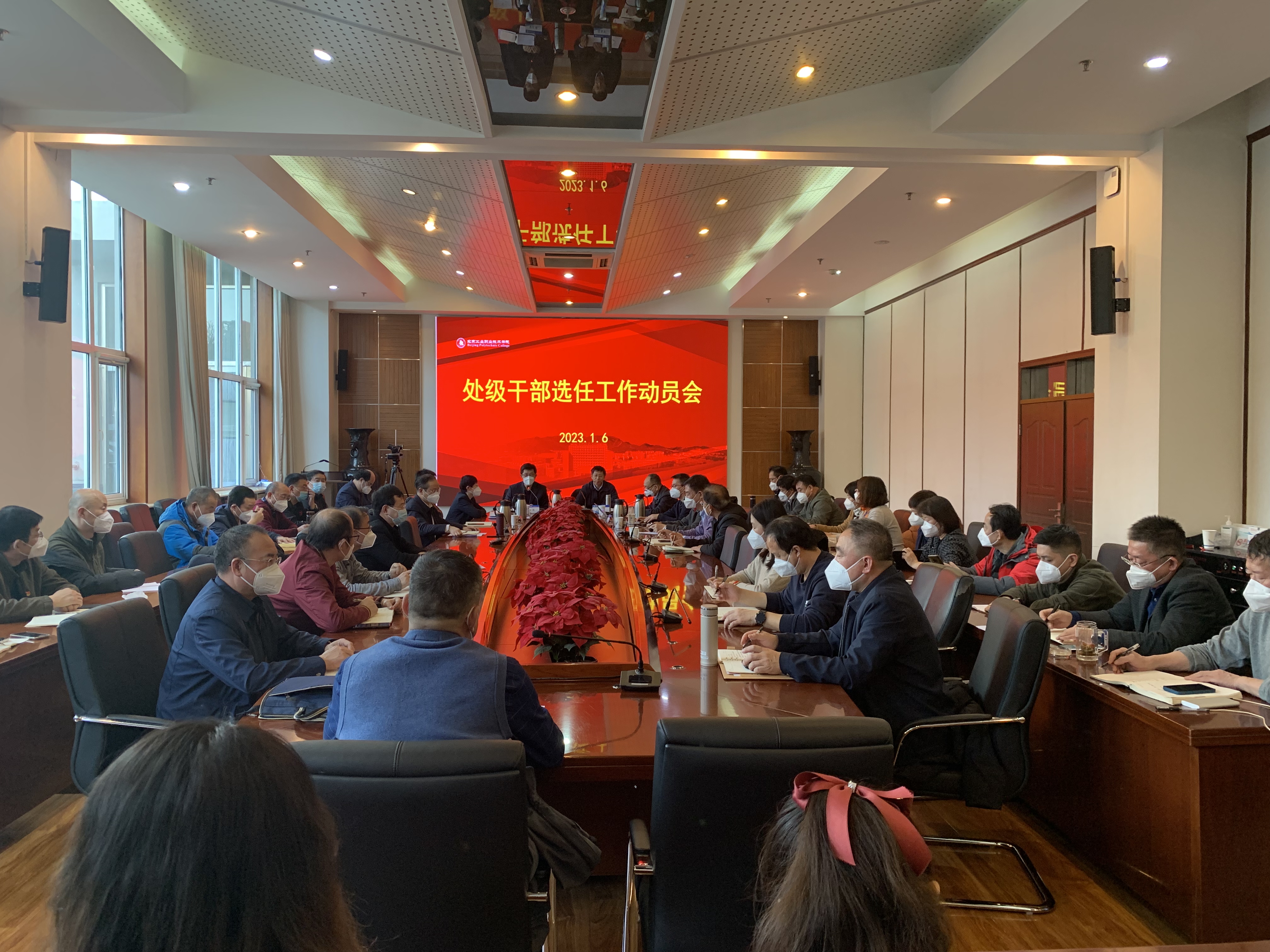 2023年1月6日上午,我校在匠心樓第四會議室召開處級干部選任工作動員會。全體校領導和中層干部參加了會議。黨委副書記、院長安江英主持會議。