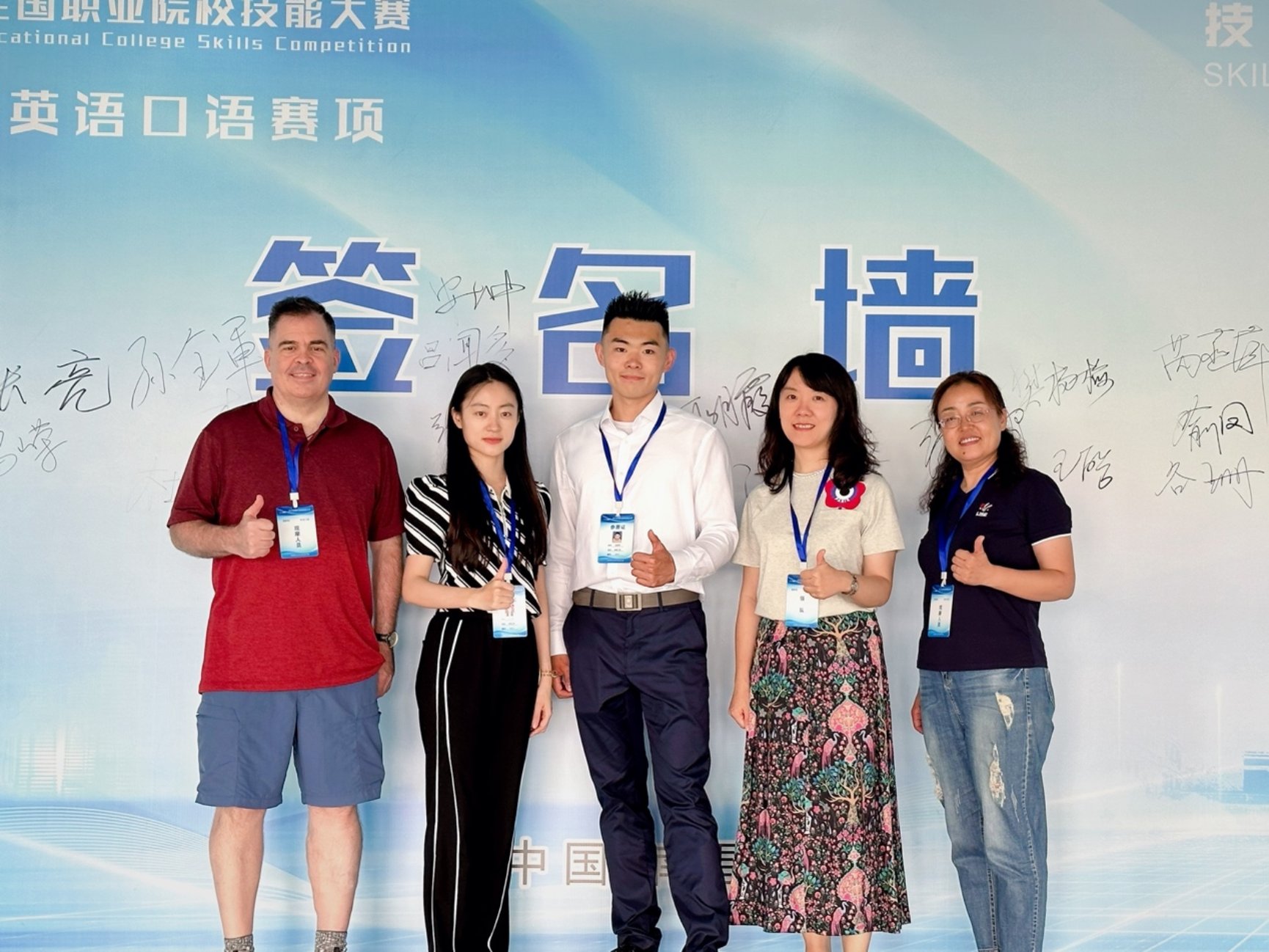 我校高度重視技能大賽工作,在教務處的統籌下,基礎教育學院組建中外教團隊。北京工業職業技術學院黨委副書記、院長安江英,黨委常委、副院長馮海明、教務處處長王佼、人事處長(原基礎教育學院院長)任鳳國、教務處副處長邱亞輝、多次了解選手備賽情況,并在備賽期間鼓勵選手努力拼搏、挑戰自我,基礎教育學院黨總支書記王巍、院長沈杰、副院長孫川多次深入指導,給予備賽團隊極大的信心。