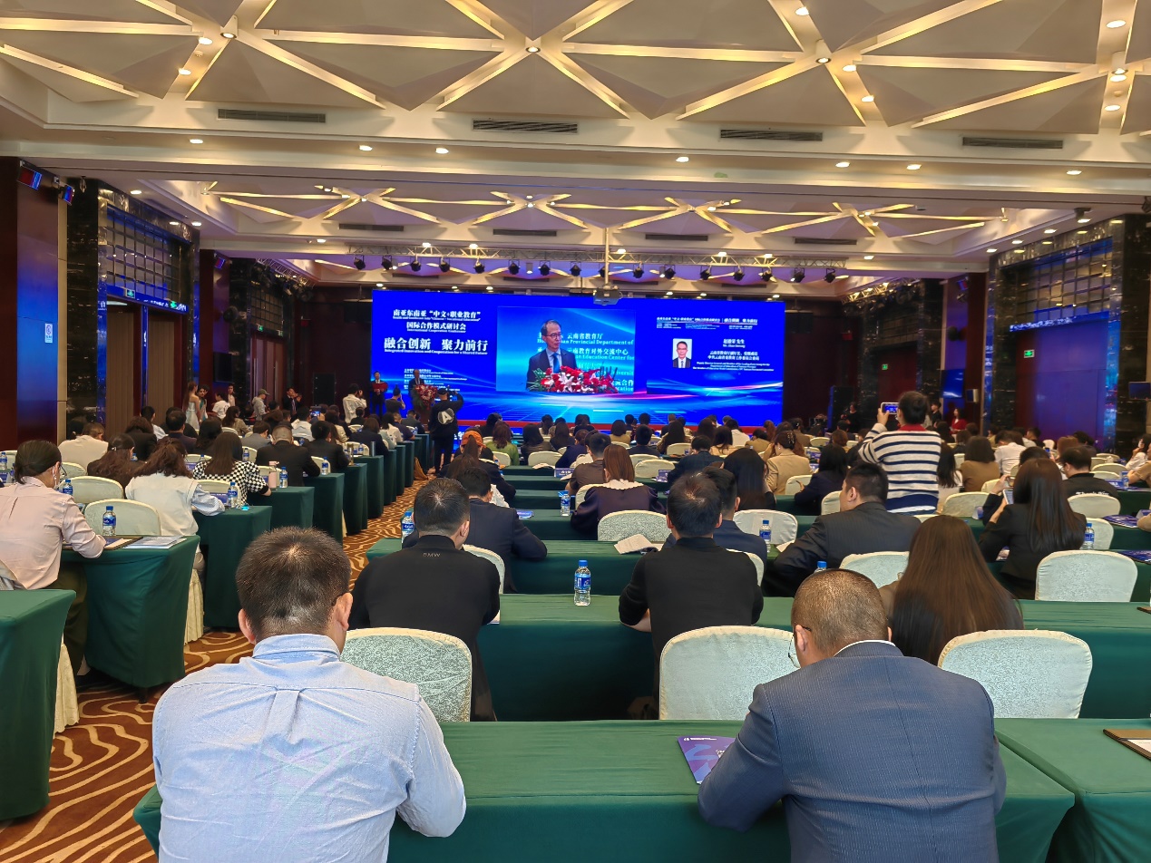 此次研討會由云南省教育廳主辦,云南教育對外交流中心承辦,云南師范大學協辦。會議聚焦在新形勢下云南省如何搭建面向南亞東南亞建設教育輻射中心,以推動“中文+職業教育”高質量發展。教育部中外語言交流合作中心(以下簡稱“語合中心”)、南亞東南亞駐華使領館官員、云南省外辦、云南省教育廳、云南省人社廳、云南省商務廳等廳局、全國“中文+職業技能”教育領域專家學者、優秀實操成果的院校和企業、南亞東南亞國家“中文+職業教育”領域相關院校和企業等共百余家單位200多人參會。