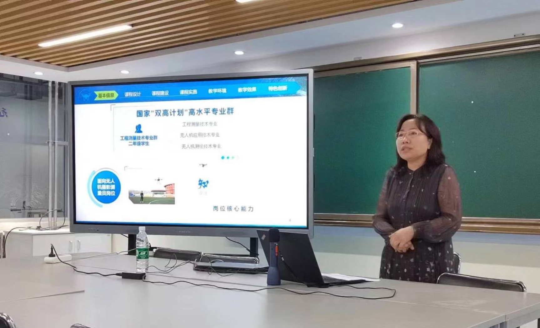 教研室學術帶頭人趙小平教授在說課環節中針對國家級在線精品課《無人機攝影測量》進行了深入講解。她詳細介紹了該課程的設置背景、教學特色及其在學生能力培養上取得的成效,充分展示了課程的創新性和實用性。