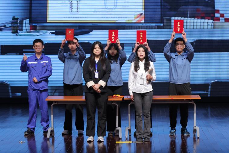 學生王陸原、杜鑫雨等演繹短劇《育匠者更是育“心”者》,以教師郭凱為原型,頌揚匠心育人的感人事跡。