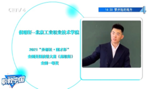 4月9日下午13:00,中國教育電視臺CETV-4 《職教中國》欄目播出“以賽育人”為主題的訪談節目。我校基礎教育學院孫川副院長作為受邀嘉賓,分享我校賽教融合機制及英語類競賽成果。學校于天嬌老師和學生代表進行視頻展示。