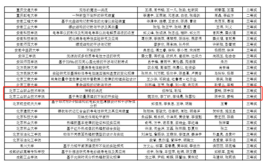 2023年11月27日,第九屆全國(guó)大學(xué)生物理實(shí)驗(yàn)競(jìng)賽(創(chuàng)新)決賽在重慶大學(xué)落下帷幕。我校學(xué)生與全國(guó)高校本科生同臺(tái)競(jìng)技,奮力拼搏,勇于進(jìn)取,基礎(chǔ)學(xué)院物理教研室指導(dǎo)的學(xué)生團(tuán)隊(duì),獲得3項(xiàng)全國(guó)三等獎(jiǎng)的好成績(jī),并且我校為北京賽區(qū)唯一獲獎(jiǎng)的高職院校。我校獲獎(jiǎng)作品分別為郭彥省、姜艷、陳宇陽(yáng)老師指導(dǎo)的《靜電場(chǎng)描繪及虛擬仿真》(機(jī)電學(xué)院學(xué)生:楊梓豪、韓浩宇、李泰來(lái)、趙好),《神奇的渦流》(建筑學(xué)院學(xué)生:任梓旭、耿旭)及《基于角動(dòng)量原理的不倒的桿實(shí)驗(yàn)》(建筑學(xué)院學(xué)生:魏羽欣、張雲(yún)松;信息:李丁昕、李鳴晨)。陳宇陽(yáng)老師作為領(lǐng)隊(duì)教師,積極配合承辦方組織各項(xiàng)競(jìng)賽事宜,我校獲得優(yōu)秀組織獎(jiǎng)。