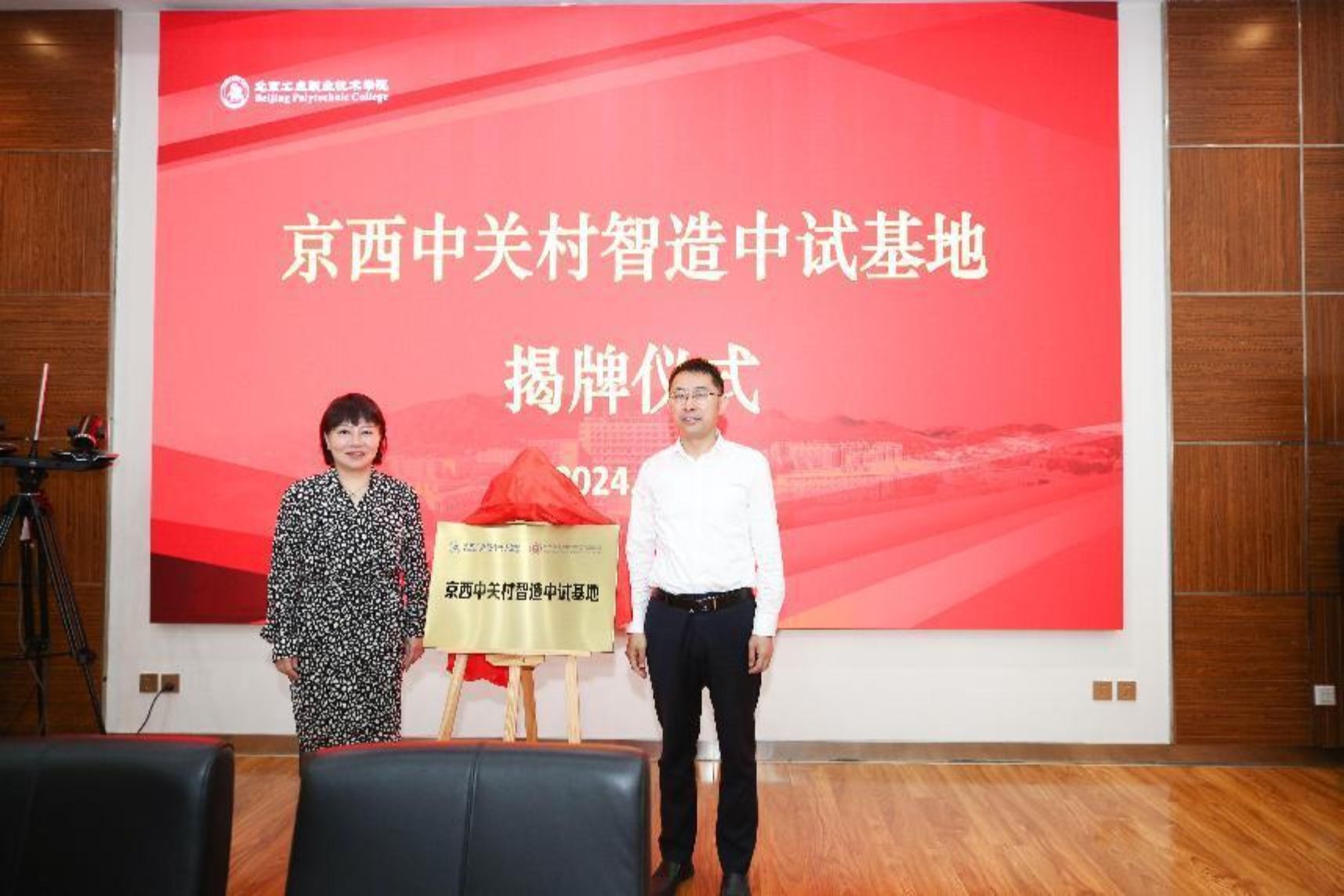 2024年5月21日上午,北京工業職業技術學院和北京中關村硬創集團共建的“京西中關村智造中試基地”揭牌儀式在北京工業職業技術學院隆重舉行。北京工業職業技術學院黨委副書記、院長柳長安,黨委常委、副院長史運濤,北京中關村硬創集團董事長程靜,中關村石景山園管委會副主任于海春、中關村門頭溝園管委會副主任張昕、商湯科技等企業代表以及北方工業大學、首鋼工學院等學校代表出席了本次揭牌儀式。