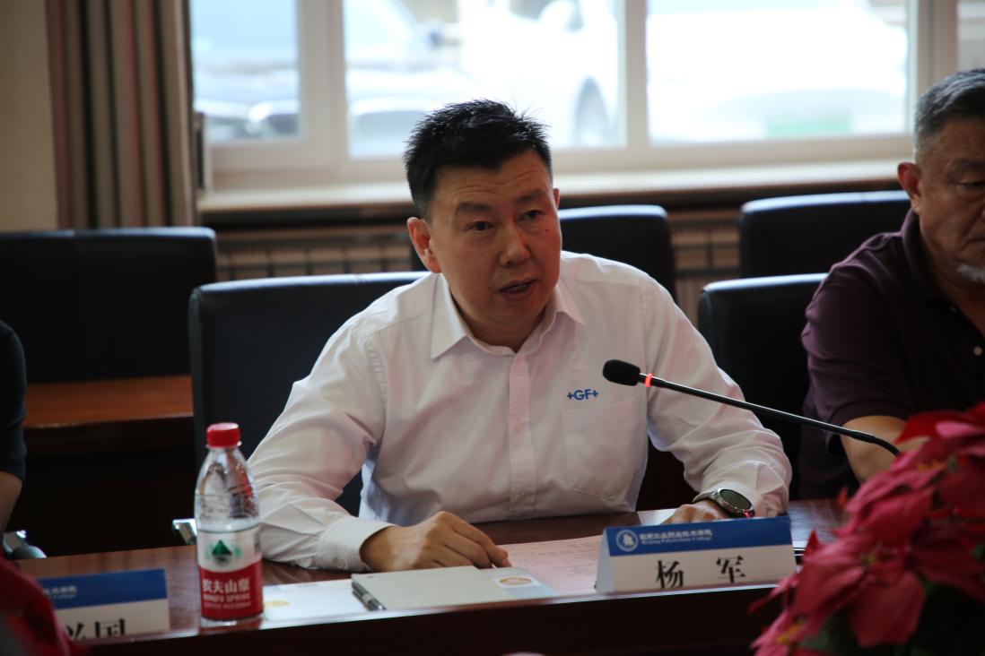 楊軍介紹了GF加工方案在工藝制造與技術創新領域積累的豐富經驗。他指出,此次與北京工業職業技術學院的合作,既是企業履行社會責任、參與職業教育發展的重要實踐,也是企業優化人才儲備、提升技術創新能力的戰略選擇。企業將積極投入優質的人力資源和技術資源,與學校共同開發課程、建設培訓基地,推動產業技術與教育教學深度融合,實現校企互利共贏。