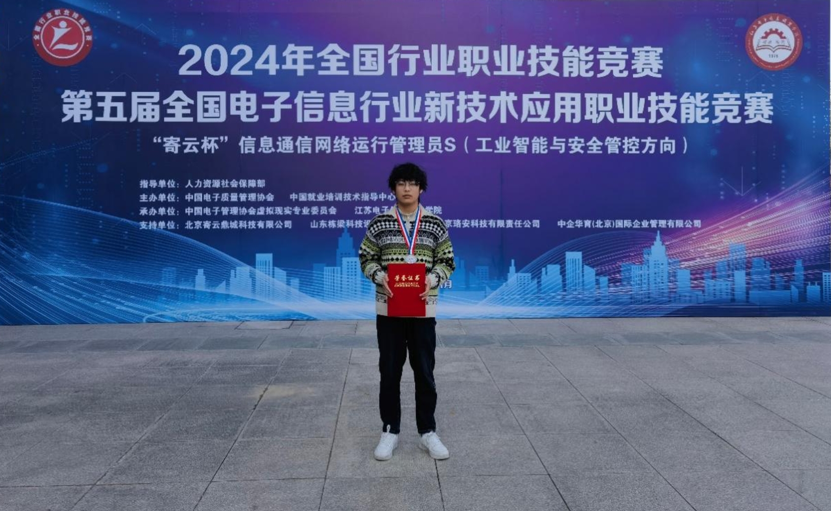 近日,2024年全國行業職業技能競賽——第五屆全國電子信息行業新技術應用職業技能競賽(工業智能與安全管控)全國總決賽在江蘇淮安開賽。來自全國24個省、自治區、直轄市的90支隊伍參加此次競賽。經過兩天的激烈角逐,我校信息工程學院網絡技術2332班(現場工程師)王遠洋位列第一,榮獲學生組全國一等獎(金牌);移動2331班的學生李曉亮榮獲學生組全國二等獎(銀牌)。