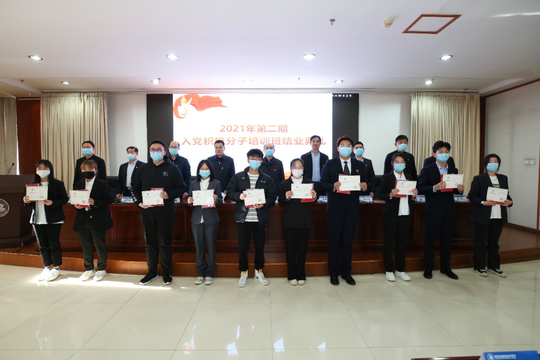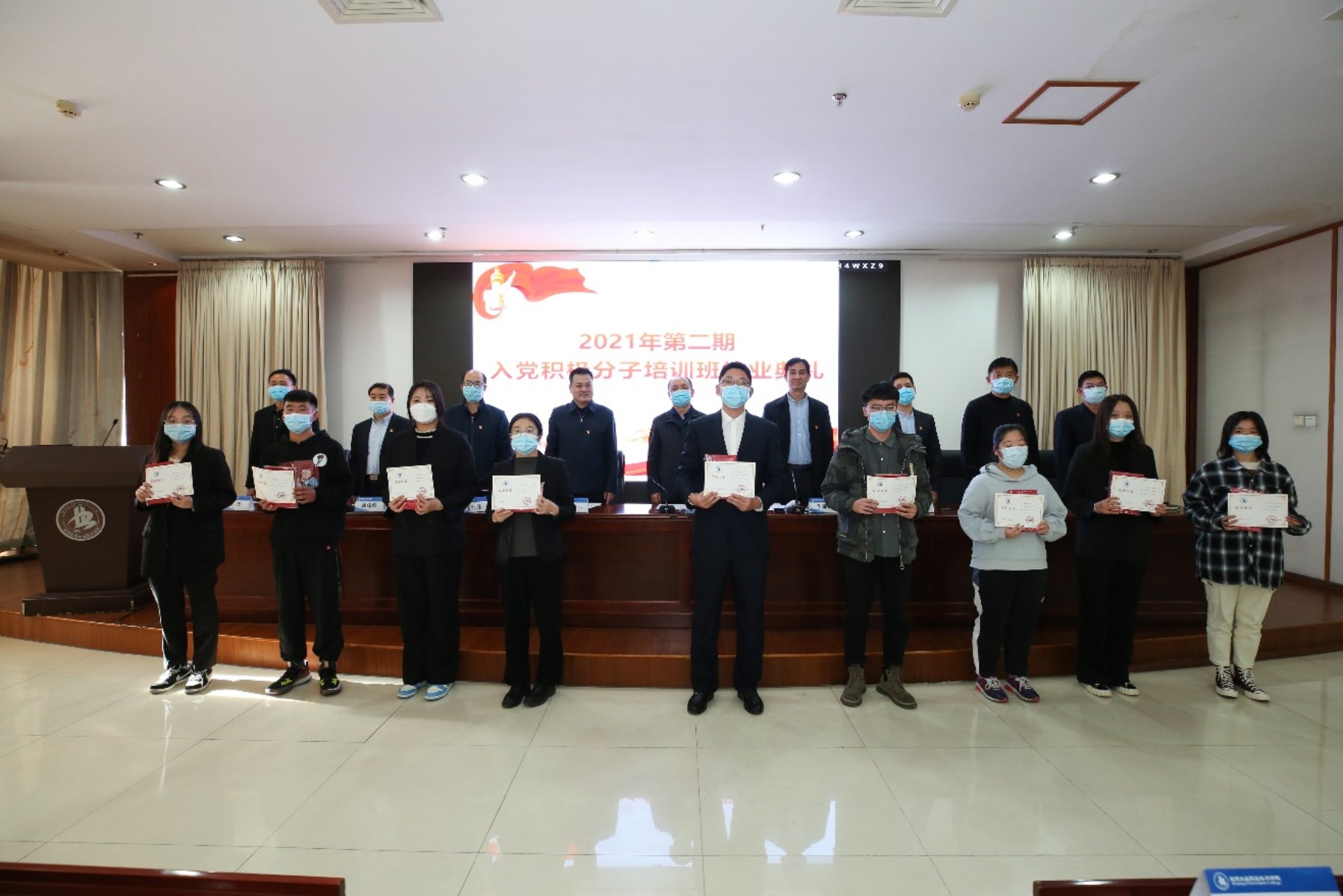 黨委副書記、黨校黨務副校長魏曉東總結講話,他代表學校黨委對順利結業的學員表示祝賀,肯定了學員們培訓期間的積極表現和取得的優異成績。他強調,2021年是中國共產黨的百年華誕,同學們在今年成為入黨積極分子意義重大。魏書記勉勵入黨積極分子要增強時代責任感,學好知識,打好基礎,增長才干,將來為中華民族偉大復興貢獻自己的智慧和力量。同時,他向學員們提出三方面要求:一是持續不斷加強理論學習,做到學習黨的基本理論與學習科學文化知識的有機統一;二是理論聯系實際,切實發揮好模范帶頭作用,做到認識與實踐的有機統一;三是進一步端正入黨動機,不斷加強黨性鍛煉,做到思想上和組織上入黨的有機統一。