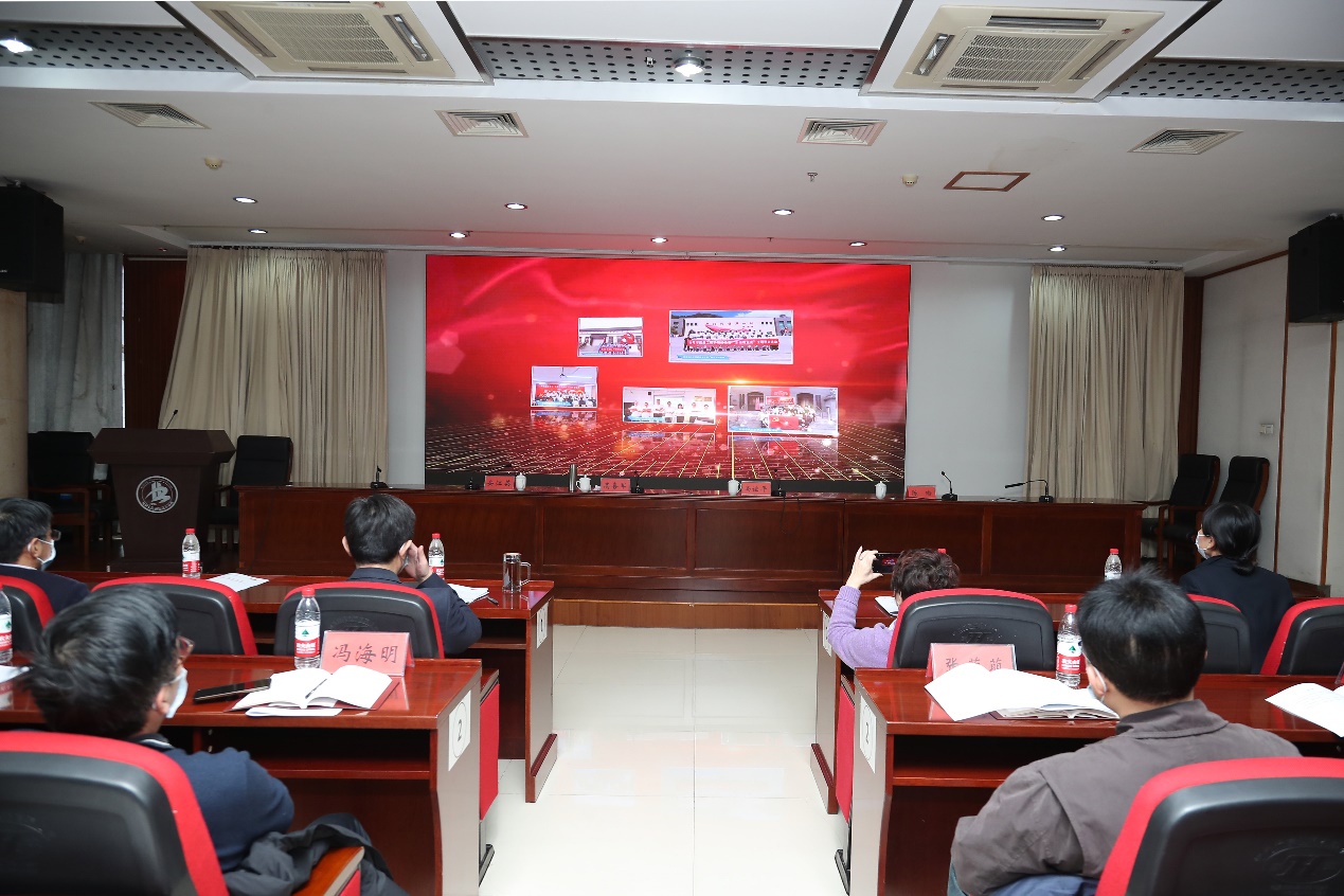 與會人員共同觀看學(xué)校黨史學(xué)習(xí)教育專題片《汲取百年黨史奮進(jìn)力量 書寫立德樹人新時代答卷》。