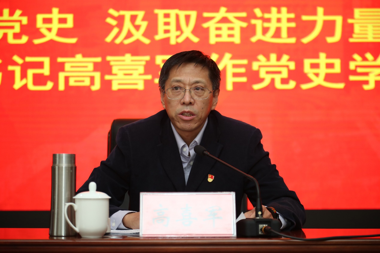 高喜軍以“四個建立”介紹學(xué)校建立完善黨史學(xué)習(xí)教育長效機制。一是建立黨史學(xué)習(xí)教育融入基層黨建長效機制,夯實組織工作根基;二是建立黨史學(xué)習(xí)教育融入人才培養(yǎng)長效機制,充分發(fā)揮黨史資政育人作用;三是建立黨史學(xué)習(xí)教育融入校園文化建設(shè)長效機制,深入挖掘紅色文化和工匠精神的時代內(nèi)涵;四是建立黨史學(xué)習(xí)教育融入提升學(xué)校治理能力和治理水平長效工作機制,積極回應(yīng)師生所需所盼。