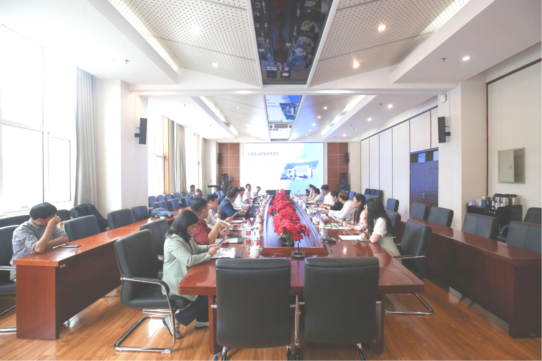安江英院長和Dr.Sommai校長現場簽署了《北京工業職業技術學院與泰國坦亞武里皇家理工大學兩校合作諒解備忘錄》。隨后,雙方就理工類專業開展學生培養、學生短期實習、訪問學者等事宜進一步交換了意見,達成初步合作意向。周燕副院長表達了對兩校國際交流合作部門增進溝通,建立合作機制的希望。