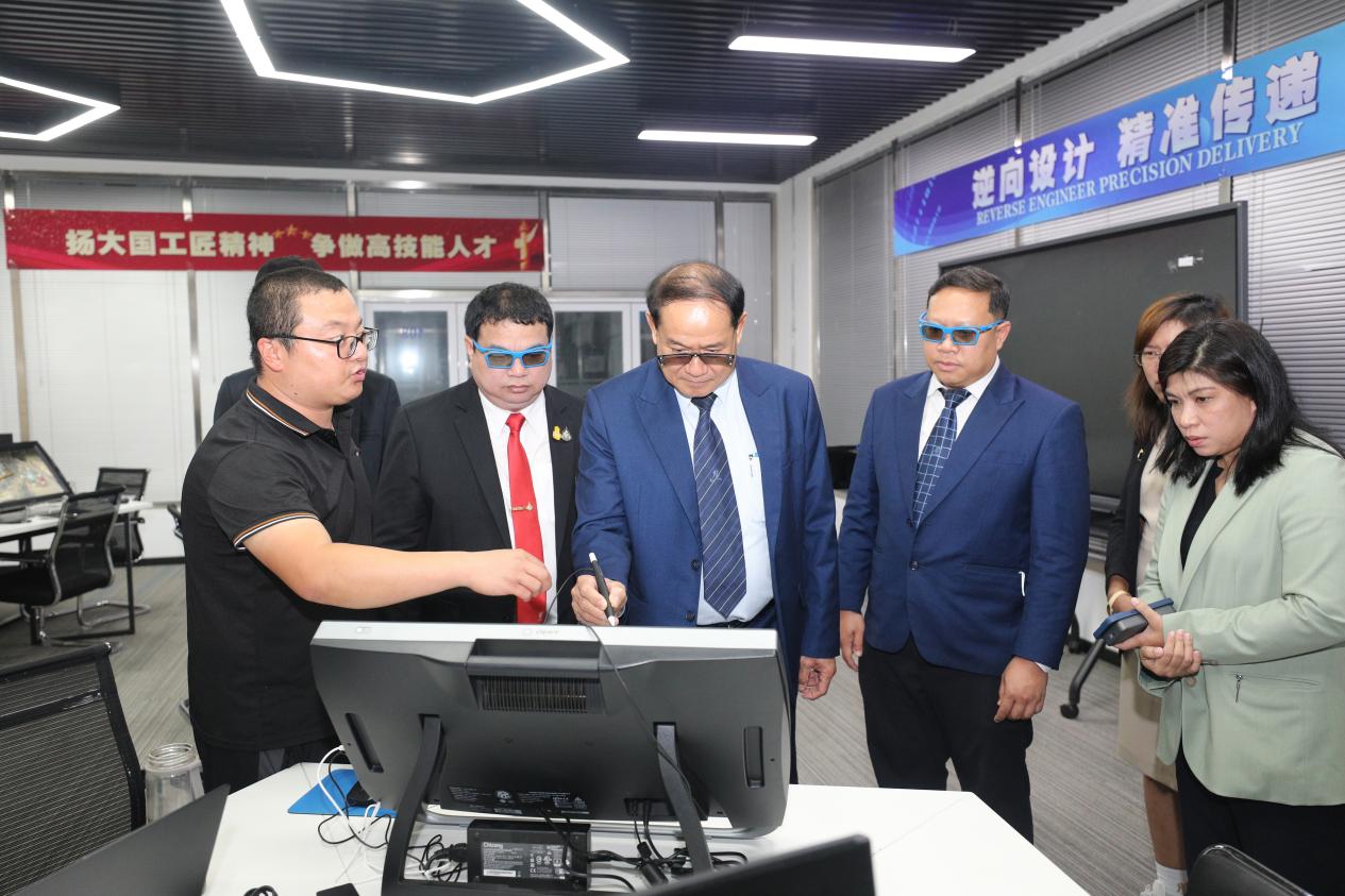 此外,泰國坦亞武里皇家理工大學校長一行在我校國際處處長孟晴的陪同下參觀了中法能效應用人才培養和研究中心、汽車實訓基地、3D打印實訓中心及智能機器人實訓室等,對我校理實一體化的教學模式和優質的實訓條件給予高度贊賞和肯定。