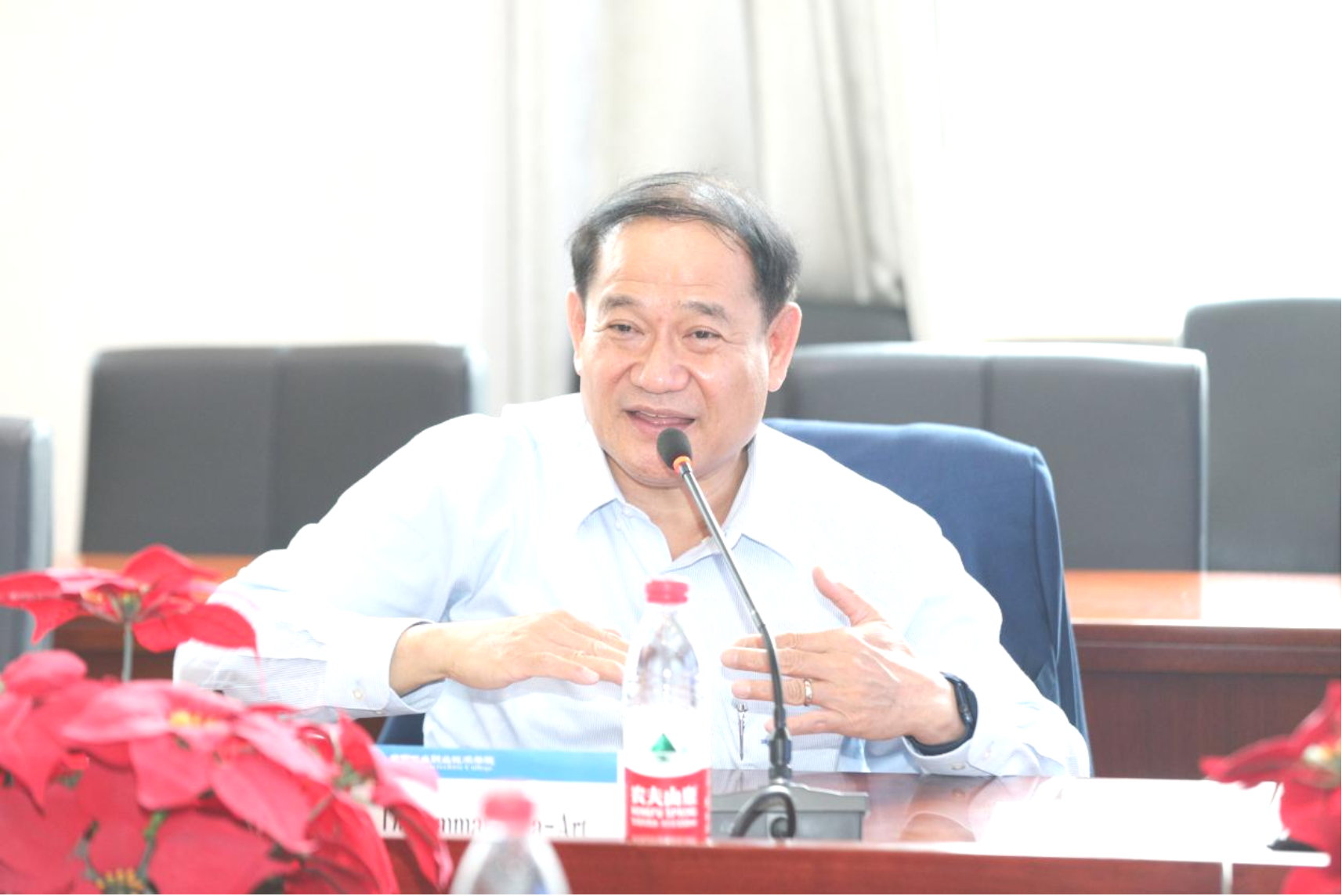 隨后,泰國坦亞武里皇家理工大學校長對我校的接待表達衷心感謝,并介紹其學校情況。他充分肯定了我校數字化辦學特色顯明,表達了對我校在數字化領域轉型服務的濃厚興趣。他說,愿為我校提供數據信息管理專業領域的師生本、碩、博士深造項目。同時希望泰方學校學生能到我校開展為期四個月的實習,并表示愿為我校提供泰方1000余家企業的學生實習崗位。
