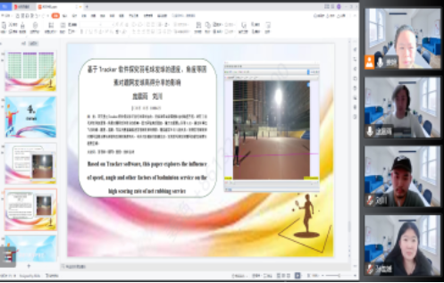 龐晨雨:這一路走來我們做了許多準備,我們在比賽前做了數月的準備,我們頂著寒風在操場上一次次的進行著羽毛球發球并拍攝成視頻,將數次發球視頻導入物理軟件中,然后通過逐幀選取的方式,將羽毛球發球后空中所在位置逐幀選取出來,得到每幀的數據,并統計成數據表。以此方式進行數次實驗后對比取出所得的所有數據表中最具代表的數據及結論,再通過與我們查詢各方資料結合所學物理知識,推導出的羽毛球高度的公式,二者相結合,在數據表的基礎上進一步優化數據選取,再進行多次計算與分析,最終得出羽毛球發球最佳蹭網的速度與角度。