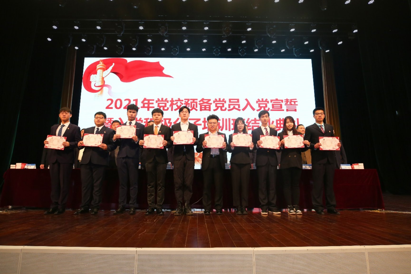 2021年4月9日中午,我校在禮堂舉辦2021年黨校預備黨員入黨宣誓暨入黨積極分子培訓班結業典禮。黨委書記、黨校校長高喜軍、黨委副書記、黨校副校長魏曉東、組織部部長苗耀華、學工處處長梁文學、團委書記鄭興、各二級學院黨總支書記、學生黨支部書記以及57名預備黨員、551名院校兩級入黨積極分子培訓班的合格學員參加了典禮。會議由魏曉東副書記主持。