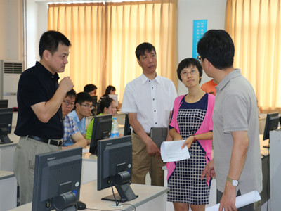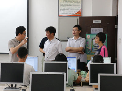 我院第六屆數學建模競賽正在綜合樓8層機房火熱進行,副校長劉蘭明、基礎教育學院院長胡喜平、黨總支書記梁文學、教學副院長王佼等蒞臨比賽現場。