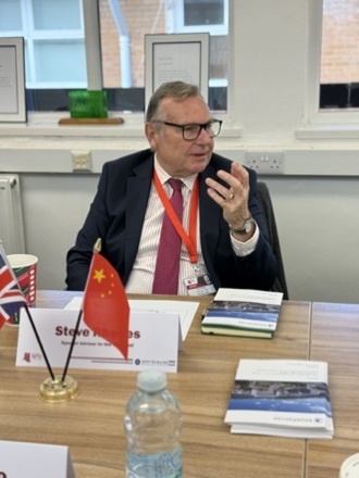 揭牌儀式后,雙方進行了深入的座談交流。任鳳國詳細(xì)介紹了我校職業(yè)教育學(xué)院在數(shù)字化教學(xué)方面的實踐經(jīng)驗和成果,表示愿意與NPTC學(xué)院集團共同開發(fā)適合職業(yè)教育的數(shù)字化教學(xué)資源。NPTC學(xué)院集團的Steve Rhodes教授分享了他們在數(shù)字化教育平臺建設(shè)、技能培訓(xùn)項目設(shè)計和如何通過數(shù)字化手段提高人力資源管理等方面的創(chuàng)新做法,并強調(diào)了教師應(yīng)作為服務(wù)者在教學(xué)過程中積極為學(xué)生提供個性化的學(xué)習(xí)支持和指導(dǎo),幫助他們實現(xiàn)自我成長和發(fā)展。雙方就如何共同推廣數(shù)字化教育經(jīng)驗、開展教師培訓(xùn)以及聯(lián)合開發(fā)教學(xué)資源等方面進行了深入交流,并達(dá)成了多項合作意向。