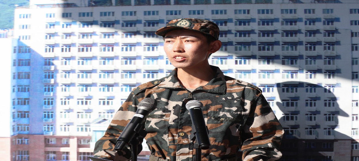 軍訓優秀學員代表機電學院張至成分享了自己在軍訓期間的感受,同時也與同學們共勉:要把軍訓中收獲的熱情、毅力和必勝的信心帶到學習中去,借一腔拼搏奮斗的熱血,借一份氣壯山河的努力,奔涌出時代的強音!