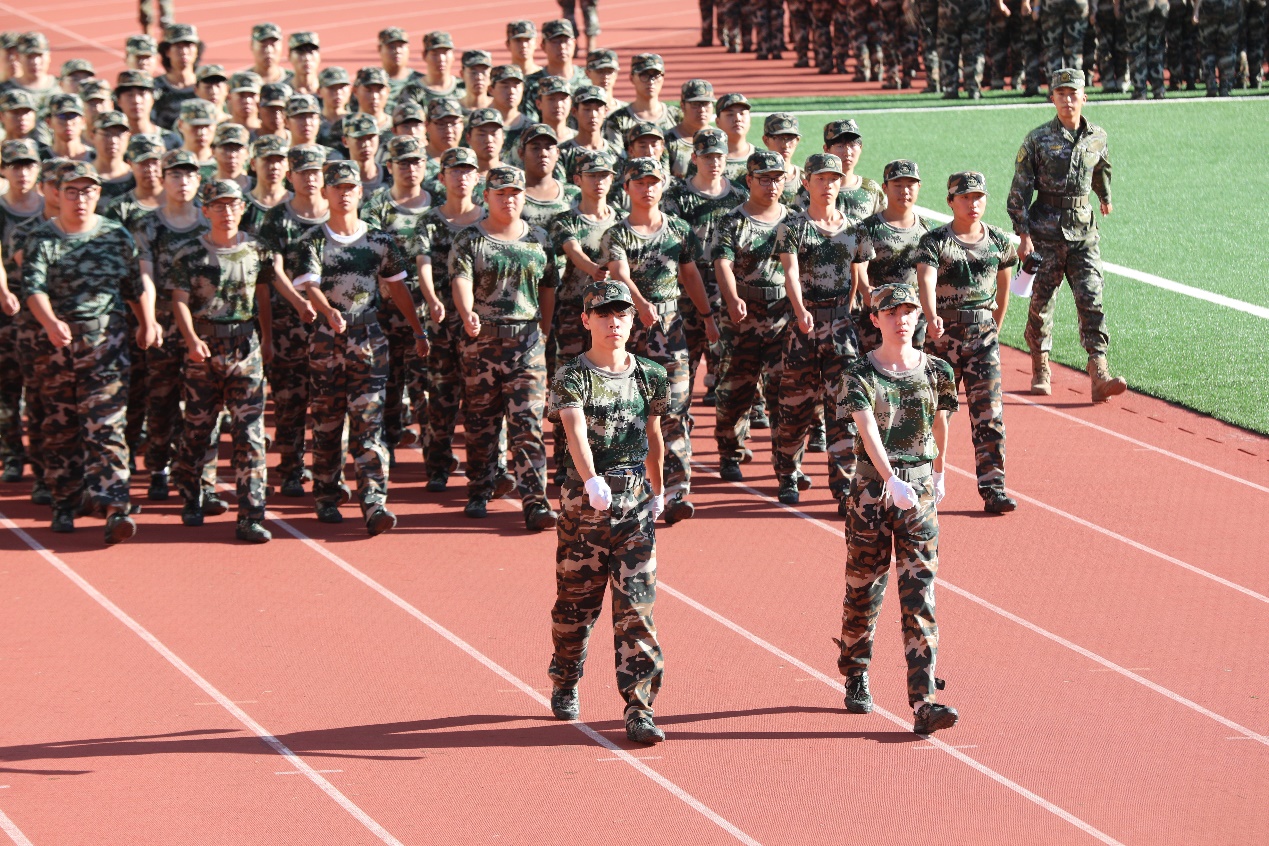 在嘹亮的軍樂進行曲中,分列式五個營隊邁著鏗鏘的步伐依次從主席臺前踏過,英姿挺拔的標兵似屹立的白楊,整齊劃一的排面,陽光下淌過汗水的臉頰,褪去了年少的懵懂。
