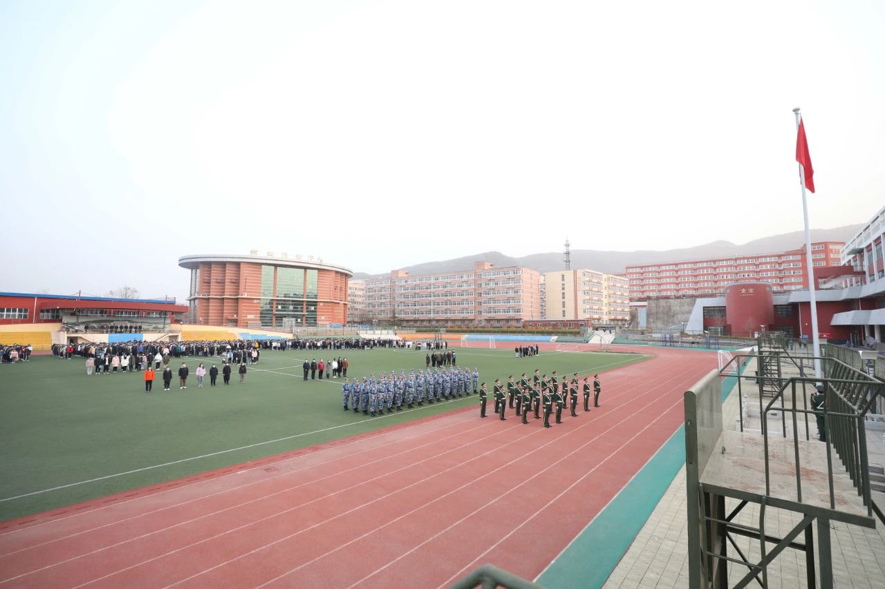 晨光熹微,新學期升旗儀式在操場進行,鮮紅的國旗伴隨著雄壯的國歌冉冉升起。升國旗、唱國歌,愛國主義教育第一課在莊嚴的升旗儀式中開始。