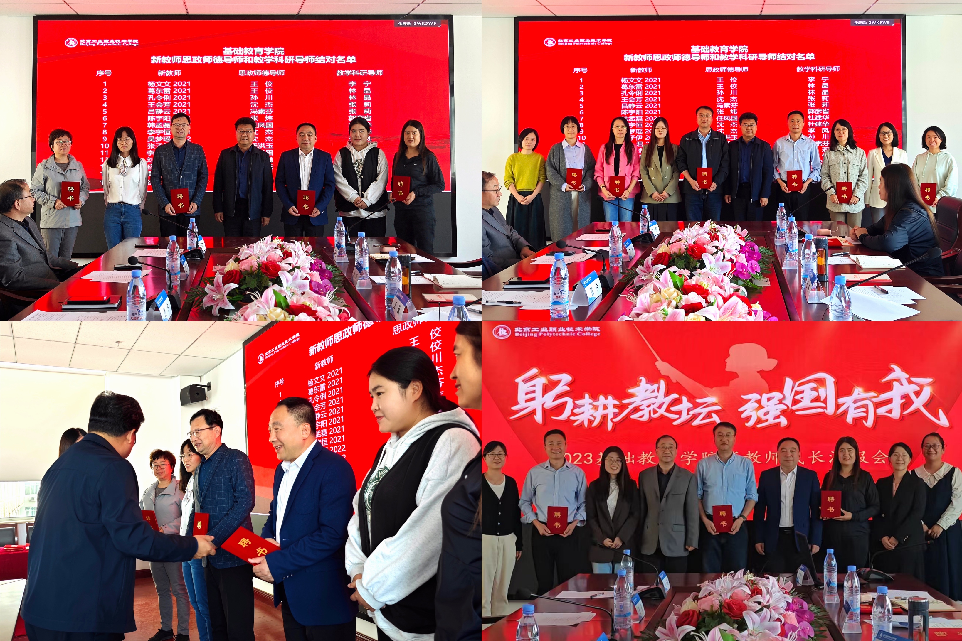 校領(lǐng)導(dǎo)和職能部門負(fù)責(zé)人向青年教師的師德導(dǎo)師和業(yè)務(wù)導(dǎo)師頒發(fā)聘書。