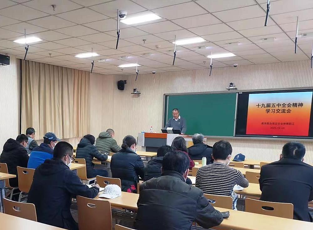 12月4日下午,在學校匠心樓212教室,教務聯合黨總支組織全體黨員和教職工集中參加了黨的十九屆五中全精神專題學習交流會。劉蘭明副校長與大家一起參加學習并對學習活動進行指導,教務聯合黨總支書記孫社文主持會議。