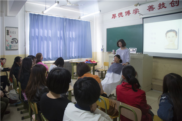 隨后,通過對個別教師的色彩試驗,使大家學習認識各種臉形、體型以及亞洲人的群體特征,運用美學中的點、線、面元素發現并創造每個人自然體型中最美的一面,完整地為青年教師們提供適合課堂教學的得體穿著搭配建議。