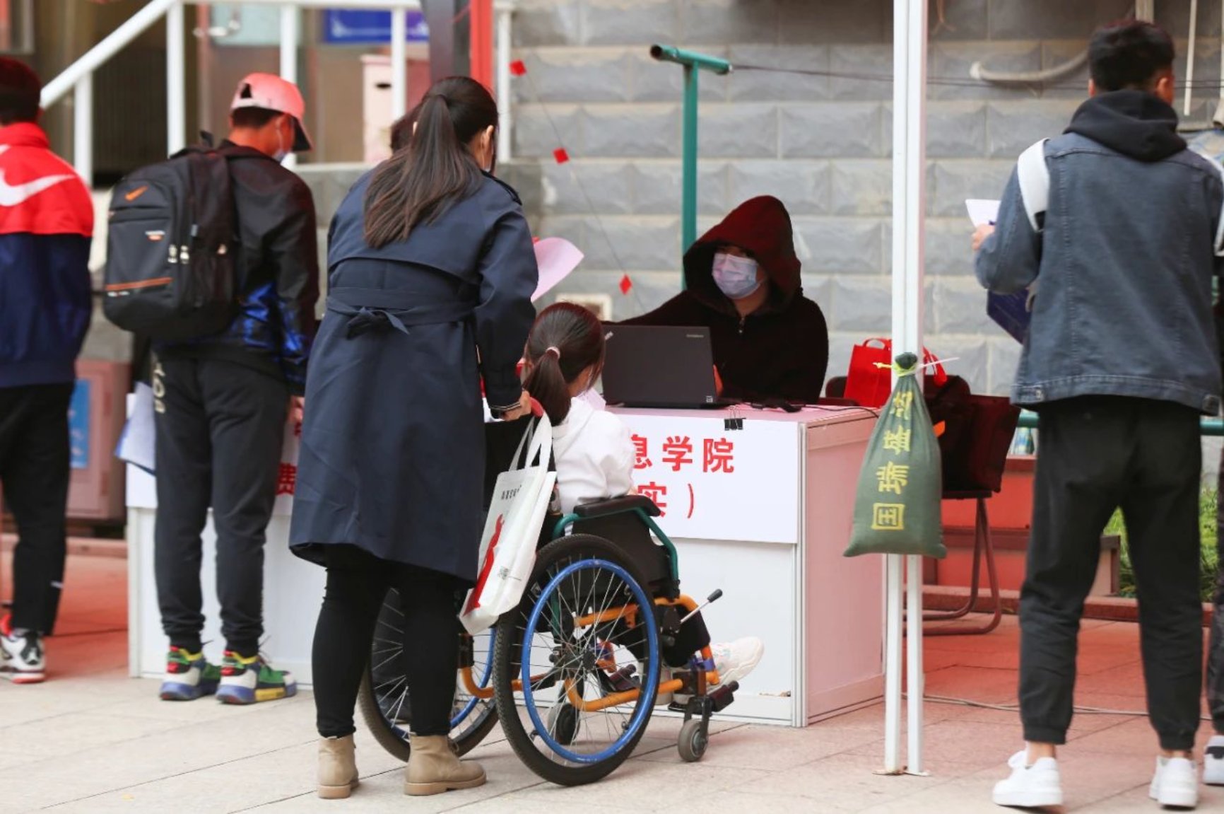 在疫情常態化防控背景下,學校推出一系列舉措,以保證新生報道安全。為了確保報道人員數量不過于集中,學校將報到現場設在室外。并在入口處設置屏幕,顯示當前出入人員數量,以便采取限流措施。財務處的趙潔老師說,“今天上午的風有點大,在室外坐久了有點寒冷,但是看到充滿活力的青春面孔,感到非常開心。還有前來報道的新生貼心地送給我‘暖寶寶’,溫暖又幸福。”