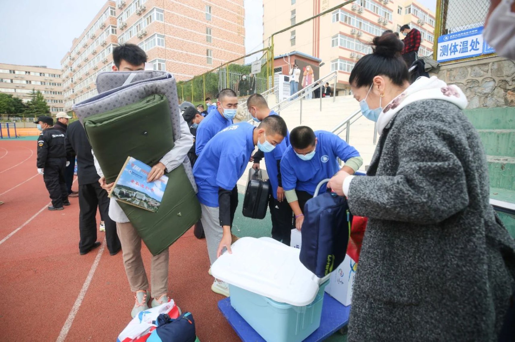 受疫情影響,今年新生報到以錯峰入校、精準服務、安全有序為工作原則。為確保疫情防控安全,新生入校前須出示健康碼、核酸檢測報告,并進行體溫測量,核驗通過后方可入校。按照疫情防控要求,家長們不能參觀校園,但早早等在校門口的老師和志愿者,熱情地迎接了新生,并帶領他們辦理報到和入住手續。