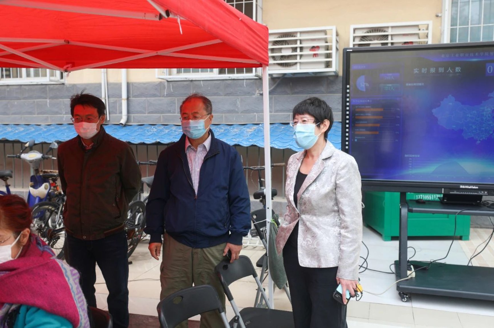 黨委書記王偉(右三)、校長安江英(左一)等領導現場指導工作