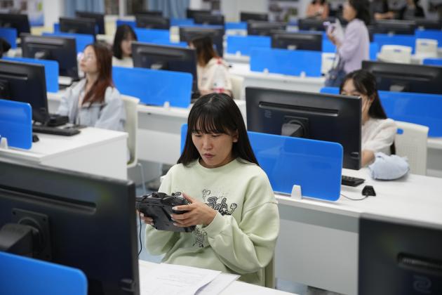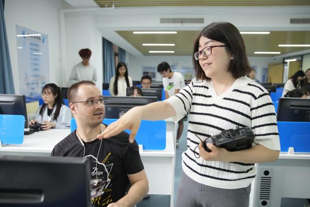 北語(yǔ)國(guó)際學(xué)生們聚精會(huì)神參與無(wú)人機(jī)模擬飛行實(shí)操訓(xùn)練