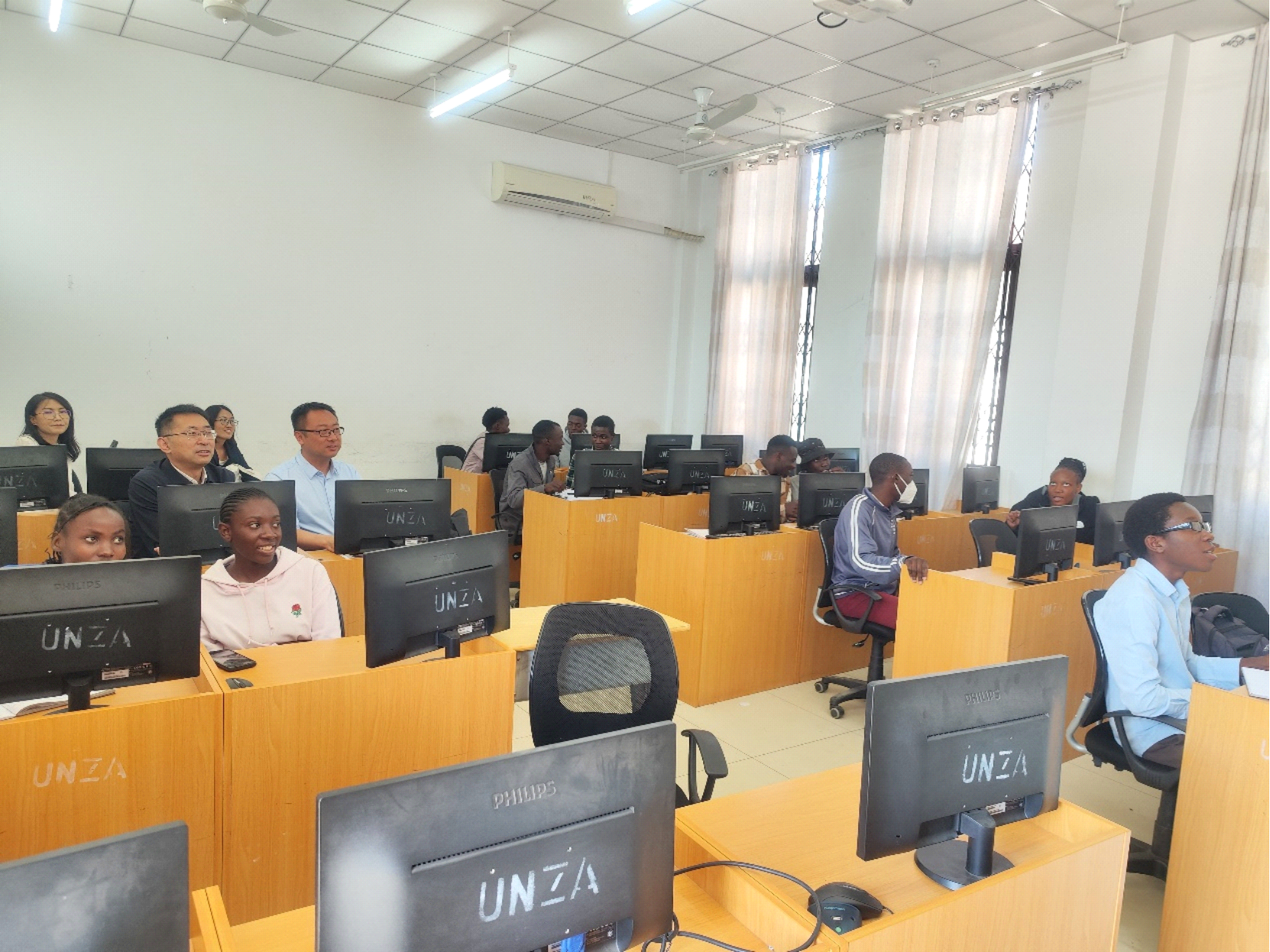 團組最后走訪了贊比亞大學孔子學院。外派教師張喜芹代表中方院長詳細介紹了孔子學院的建設情況和中文教學的開展情況。我校中贊職院分院院長兼孔子課堂負責人馬雋也向對方介紹了中贊職院孔子課堂的建設情況及未來的工作計劃。雙方就如何進一步推廣中文教育、加強文化交流等方面進行了深入交流。