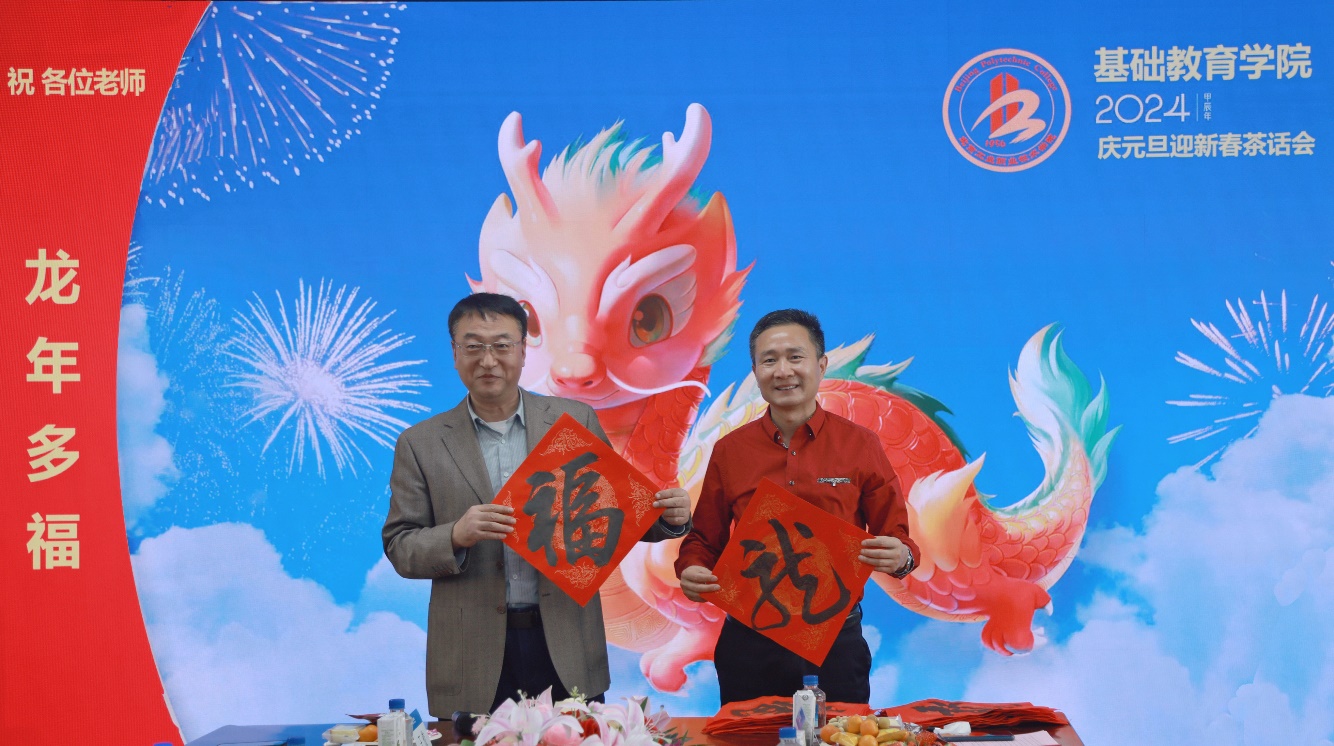 2023年12月29日下午,基礎教育學院舉辦了2024年新春茶會話。基礎教育學院聯系校領導校黨委常委、紀委書記錢偉,校工會常務副主席王艷紅,黨委教師工作部部長、教師發展中心主任、人事處處長任鳳國,教務處處長王佼,黨委宣傳部副部長胡軍偉,黨委學工部副部長、學生處副處長張煒等領導蒞臨了本次茶話會,同基礎學院教師歡聚一堂,共迎新年。