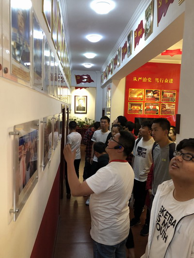 同學們參觀了領袖家風館陳列的中共一大到十九大的黨史展覽,共青團一大到十八大團史展覽,以及領袖家風家教廉政教育展覽,聆聽了中共一大十三位黨代表的悲喜人生故事,感悟中國共產黨從苦難到輝煌的艱辛歷程,在時光隧道一起回顧了從1921年建黨至今所經歷的大事記。