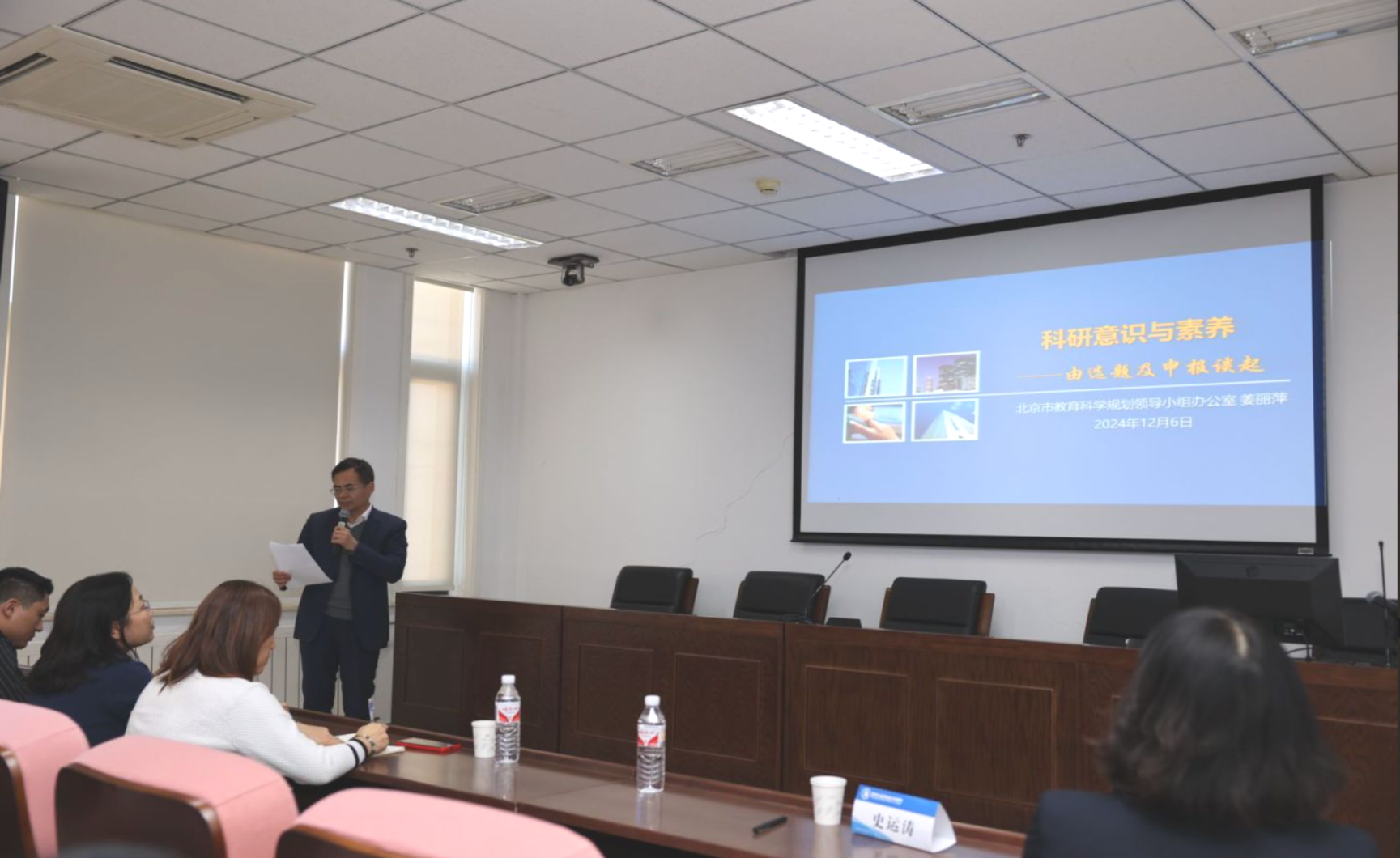 為進一步提升教師的科研能力,科技處組織開展科研能力提升系列講座。12月6日下午,邀請北京市教育科學研究院規劃辦主任姜麗萍研究員,在圖書館五層報告廳開展“科研意識與素養——由課題的選題、申報說起”主題講座。我校黨委常委、副院長史運濤主持,學校11個創新服務中心成員及專業教師八十余人參加。