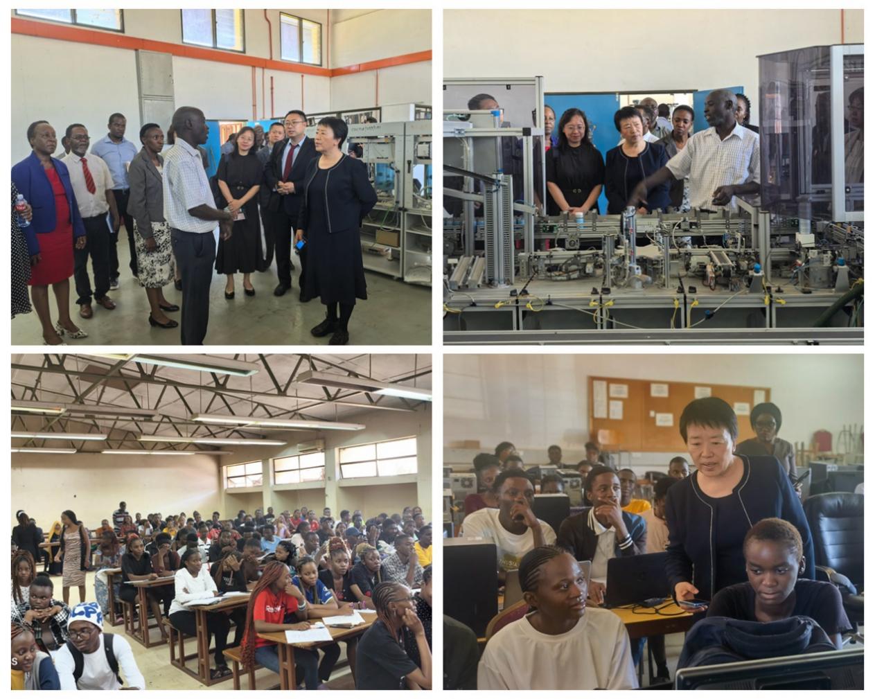 訪問團隨后參觀了社會科學學院中文教學教室、機電一體化實訓室和信息工程學院實訓室,了解了本土高校本科人才培養情況,銅帶大學校長Imasiku A. Nyambe表示,除了中文教育合作,未來也希望在專業領域有所合作。